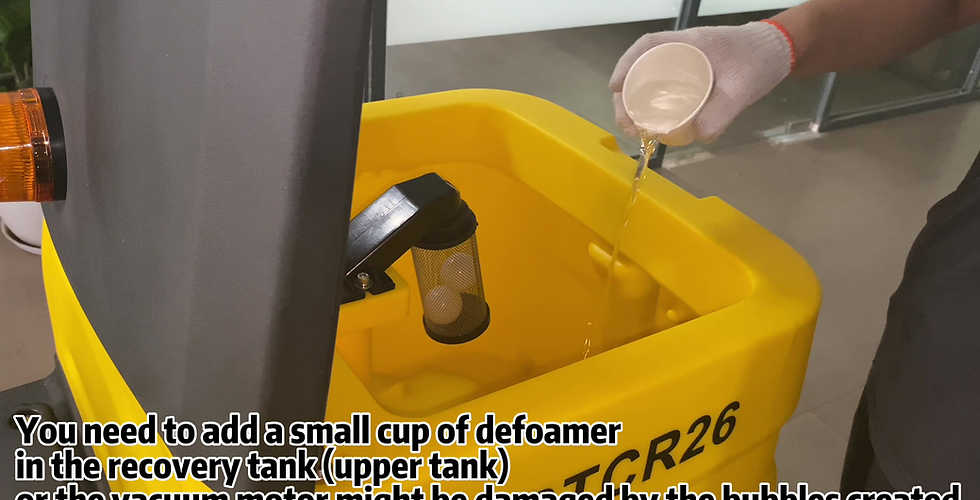 Item Name Parameter BTCR26 Brush Width in 26=13*2 Squeegee Width in 39 Working Time h 5-7 Battery ah 150*3 Solution Tank Gal 27 Recovery Tank Gal 30 Brush Rotation rpm 175 Efficiency sq. ft/h 43,900~50,900 Voltage V 24 = 3*8 Vacuum Motor Power HP 0.67 Brush Motor Power HP 2*0.47 Traction Motor Power HP 0.67 Speed MPH 0~3.1 Pad Pressure lb 77 Weight with box lb 700 Net weight lb 547 Dimension(with Box) L*W*Ht in 59*28*51 Machine Dimension L*W*Ht in 55*27*43 You can clean the floor with clean water. If the floor is greasy or sticky, you can add solution to the solution tank (lower tank) while adding defoamer/anti-foam in the recovery tank (upper tank) or the vacuum motor might be damaged and warranty voided.